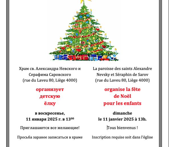passer à la page française Воскресенье 4 января: 10.30 – Литургия. Рождество Христово Вторник 6 января: 18.00 – Всенощное бдение. Среда 7 января: 10.30 – Литургия. 13.00 – Праздничный обед. Суббота 10 января: …